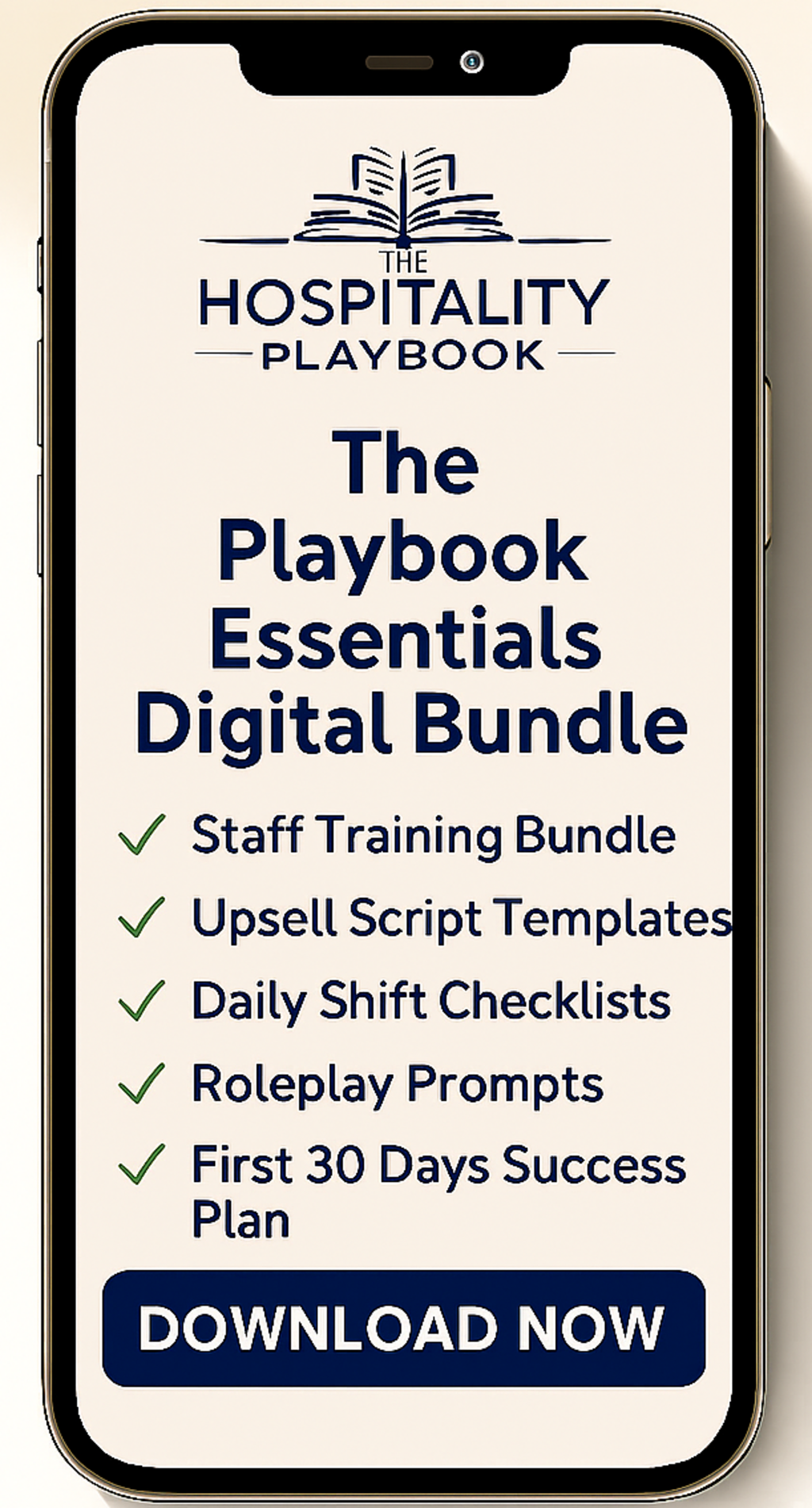 The Playbook Essentials digital training bundle gives you the scripts, systems, and service strategies you need to easily implement to boost revenue, reduce turnover, and build a 5-star guest experience on your terms.